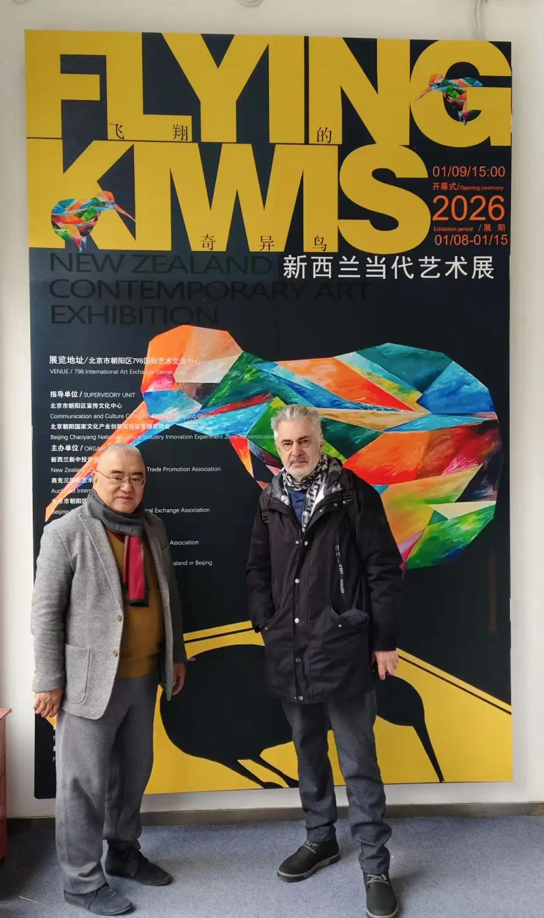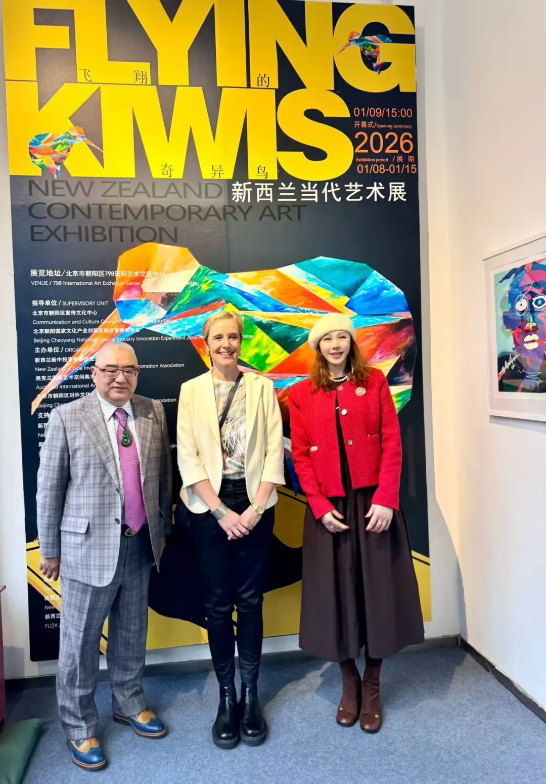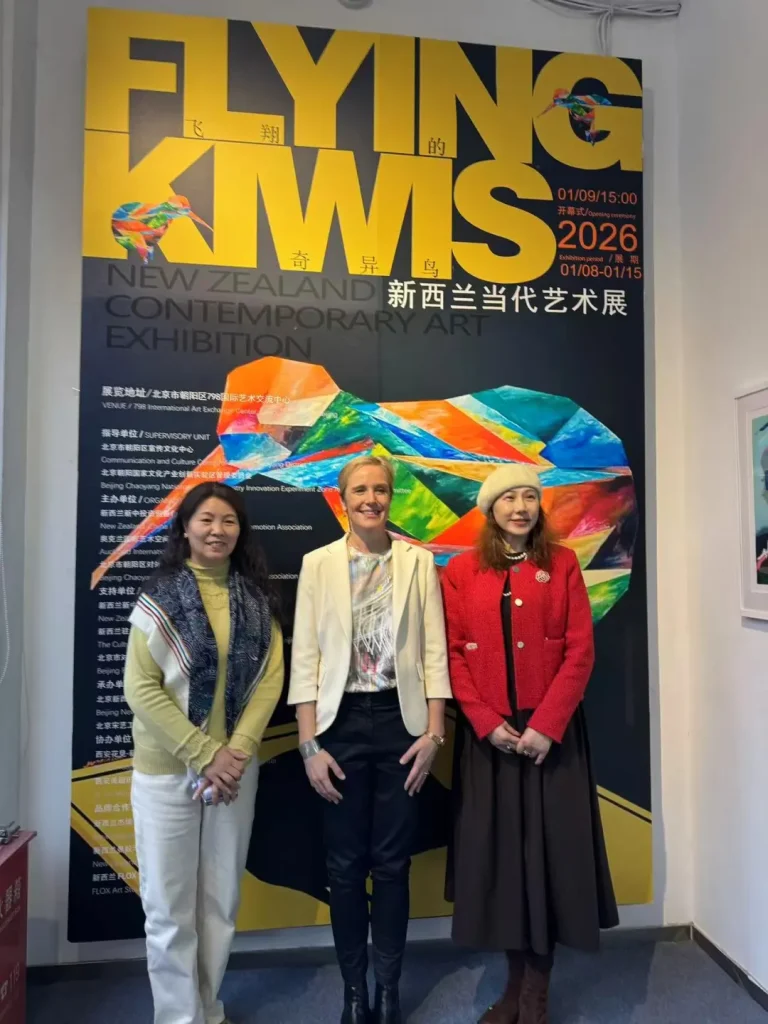 On January 9, 2026, the “Flying Kiwi” New Zealand Contemporary Art Exhibition opened at the 798 International Art Exchange Center in the 798 Art District, Chaoyang District, Beijing. The exhibition was hosted by the Publicity and Culture Center of Chaoyang District, Beijing, and jointly guided by the Management Committee of the Beijing Chaoyang National Cultural Industry Innovation Experimental Zone, the New Zealand-China Friendship Association, and the New Zealand Embassy in China; and co-organized by the New Zealand-China Investment and Trade Promotion Association, the Auckland International Art Space Museum, and the Beijing Chaoyang District Association for International Cultural Exchange. The exhibition aims to build a bridge for cultural exchange between China and New Zealand through art, presenting audiences with an artistic visual feast full of South Pacific charm.